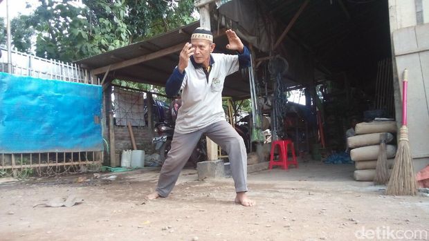 Kakek Sumarjono saat peragakan silat (Angling/Detikcom) |