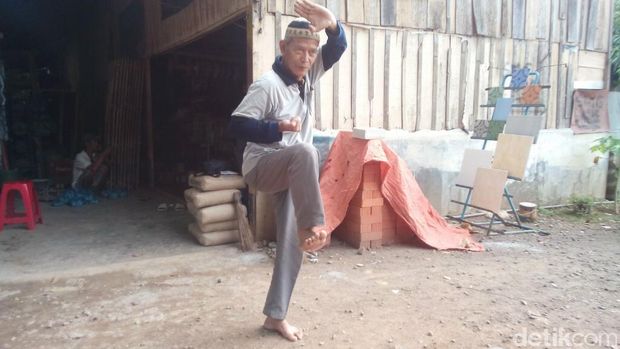 Kakek Sumarjono saat peragakan silat (Angling/Detikcom)